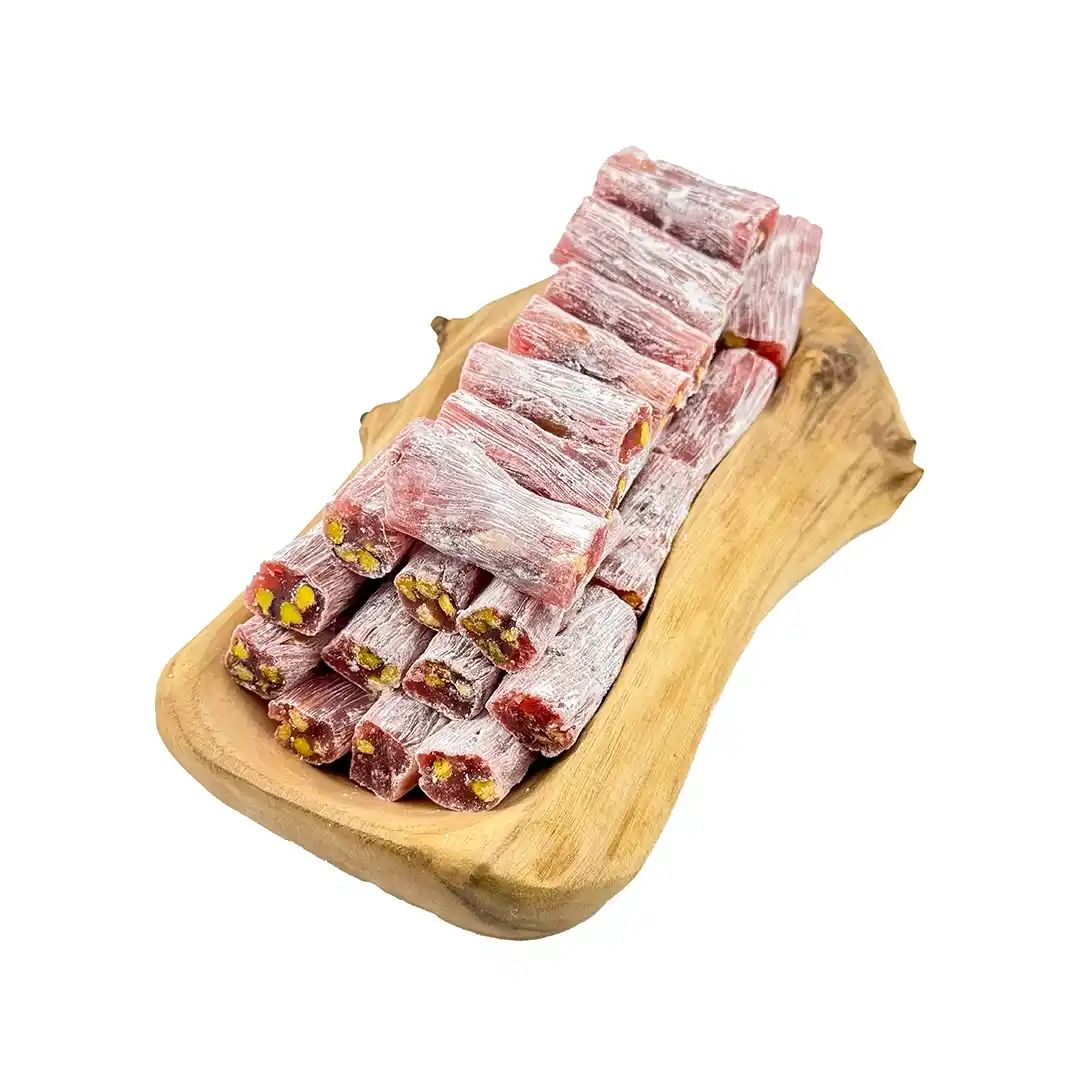 - پذیرایی خاص و متفاوت: تکههای فیتیلهای لوکوم با طعم انار و پسته، جلوهای متفاوت و لوکس به سینی پذیرایی میبخشد؛ هم زیباست، هم خوشطعم.